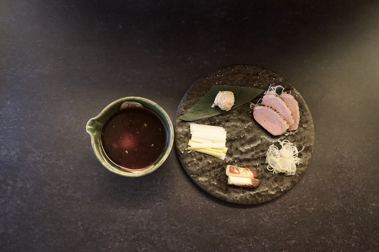 秘伝の黄金比率で調えたスープは、甘さと脂を抑えた上品な味わい。千葉県産の柔らかい鴨肉と、異なる部位を使用したジューシーな鴨つくねが旨味を引き立てます。さらに、厳選した季節のネギがアクセントとなり、スープに奥行きを加えます。
